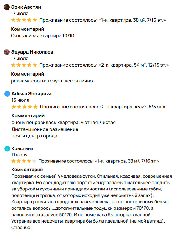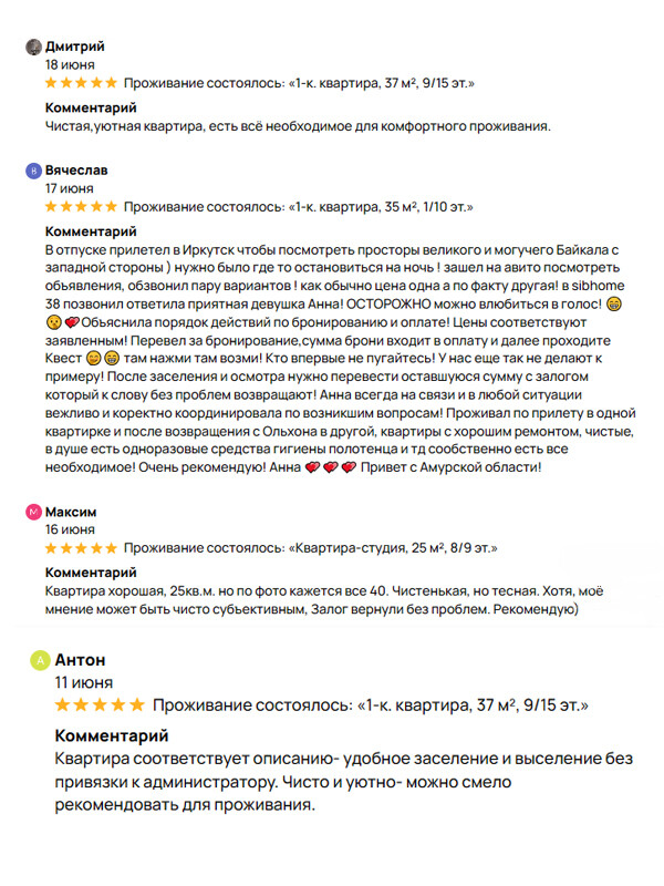 который знает свою работу и создает сервис. Вас всегда ожидает убранная квартира со всем необходимым для комфортного проживания