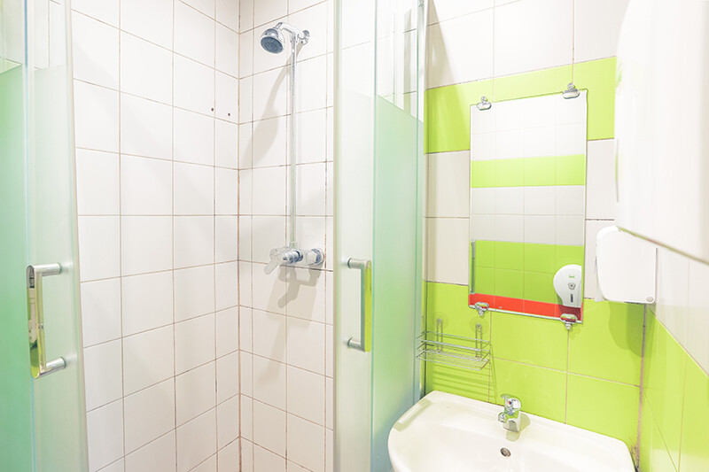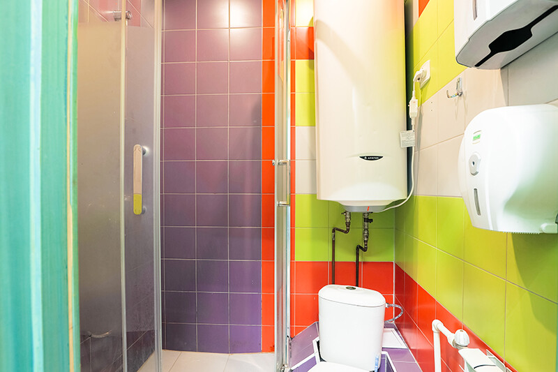 и полотенце. Возле каждой кровати есть светильник, полка и розетка.