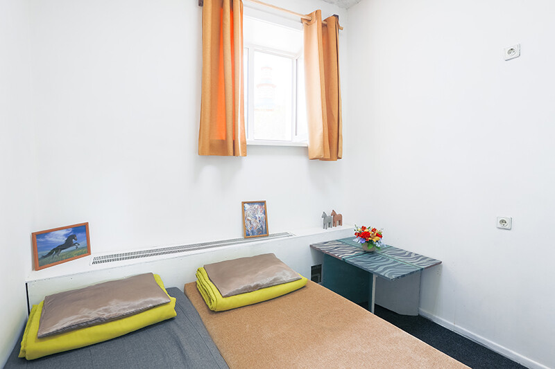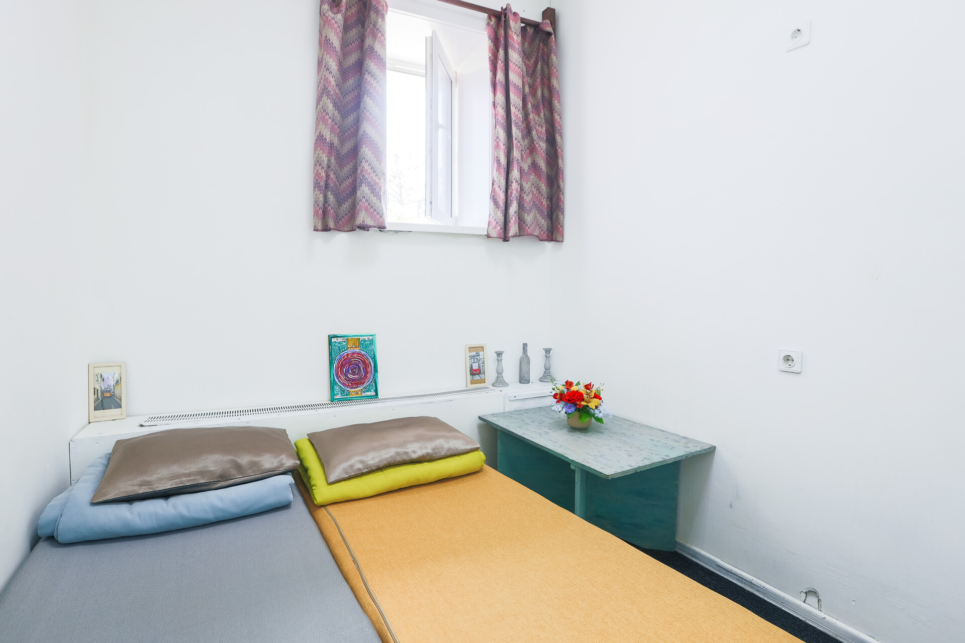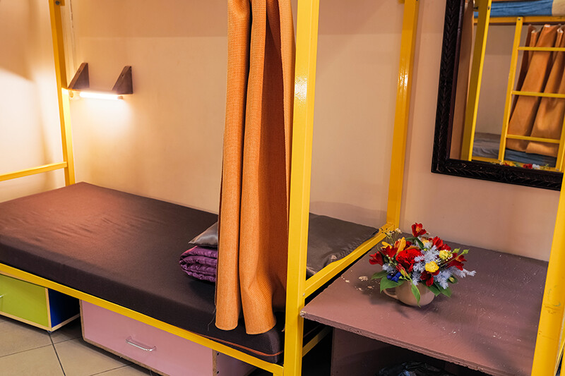 В стоимость входит комплект постельного белья и полотенце. Возле каждой кровати есть светильник, полка и розетка.